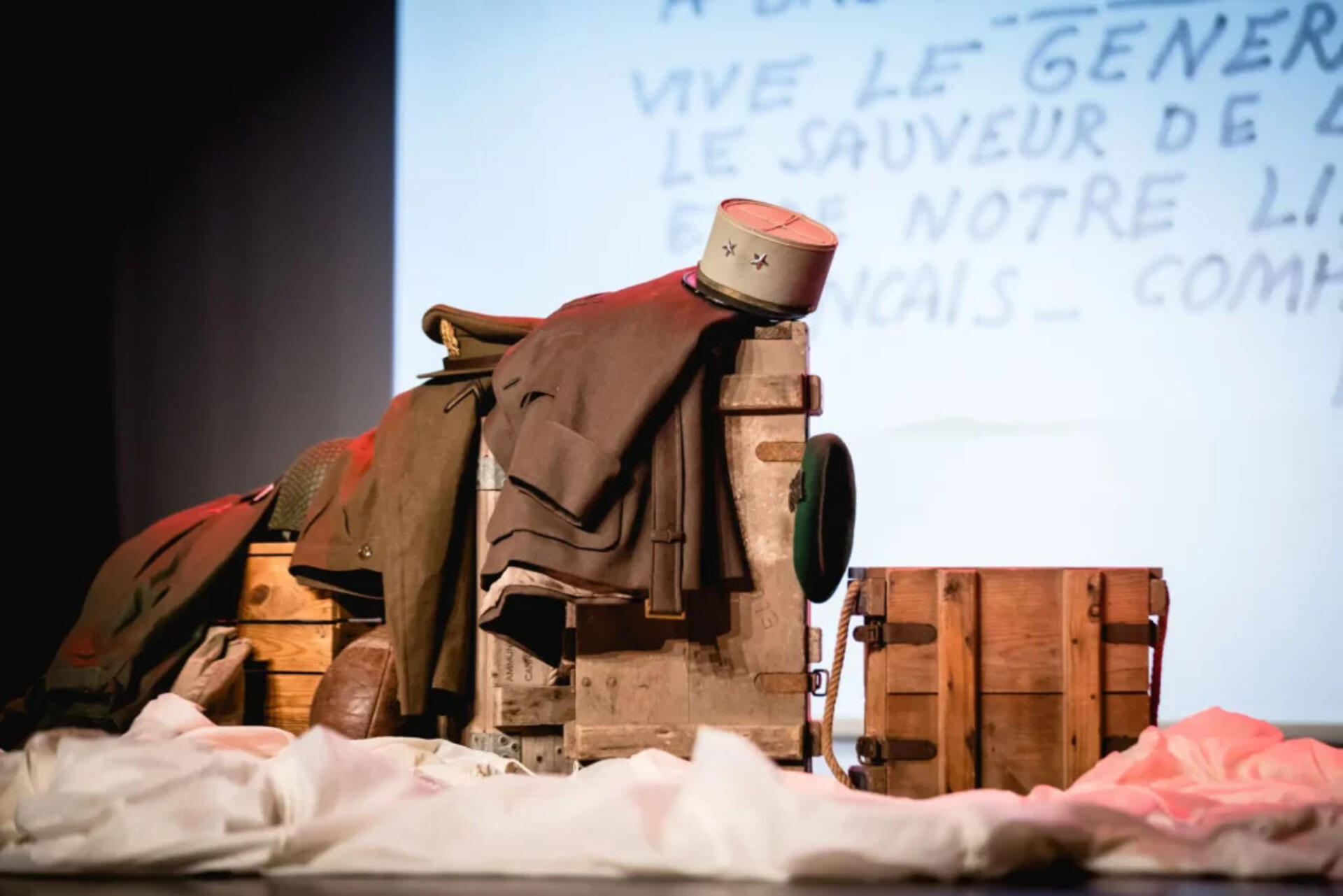 Sur scène, un décor minimaliste. Vestes, casques, caisses deviennent autant d’accessoires dont Christophe se sert au fil du récit, soutenant un rythme dynamique. En toile de fond, projections d’archives et aquarelles animées, réalisées par Pierre-Louis Chardon, apportent une dimension visuelle poétique. Cette mise en scène astucieuse, également de Laurence Bohec, accentue l’effet “voyage dans le temps”, bousculant le spectateur jusqu’au bout du raid.